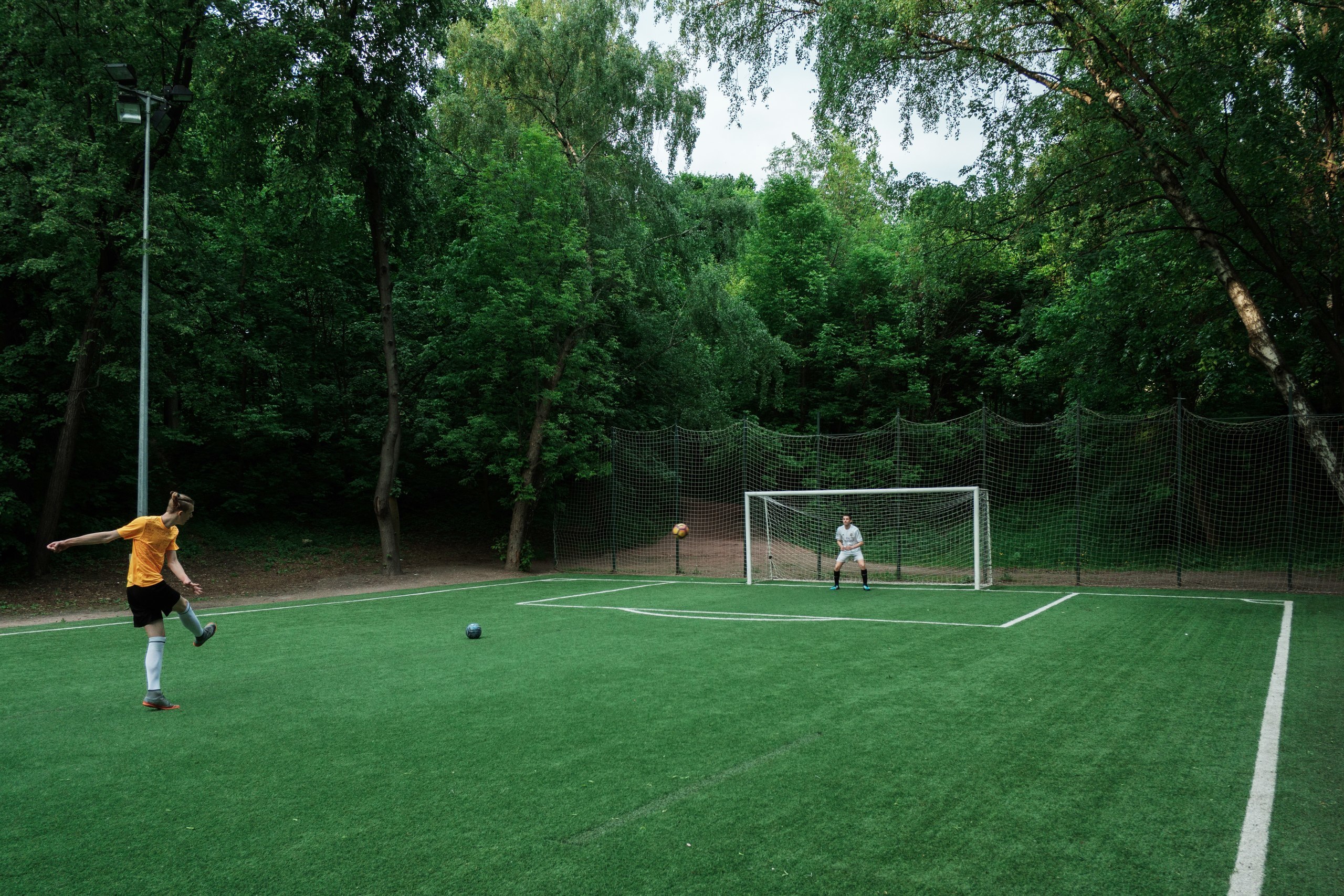Играем в футбол на свежем воздухе в одном из самых живописных мест столицы.